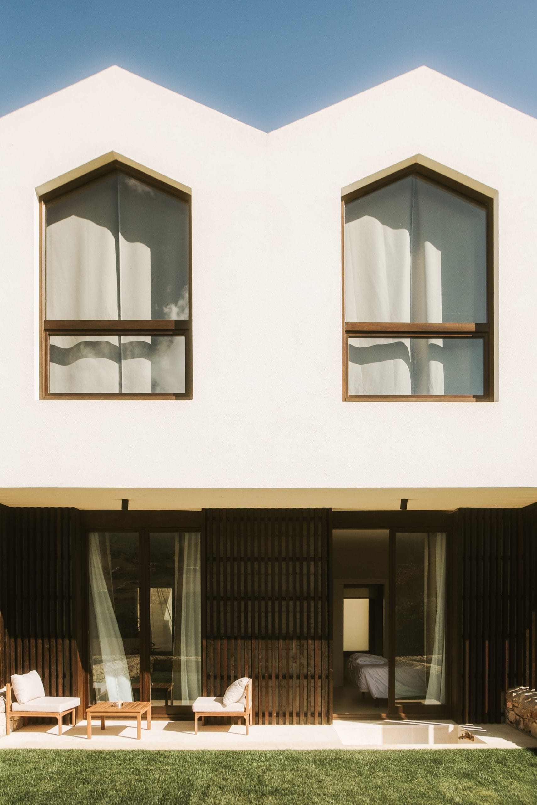 El acceso de las unidades se realiza por la fachada Sur, a través de un enorme patio abierto permitiendo maximizar las vistas de las unidades a los Picos de Europa y dotando a los apartamentos de ventilación cruzada a través de sus fachadas Norte-Sur. La circulación del nivel superior se resuelve mediante una piedra blanca generando un ambiente uniforme.
